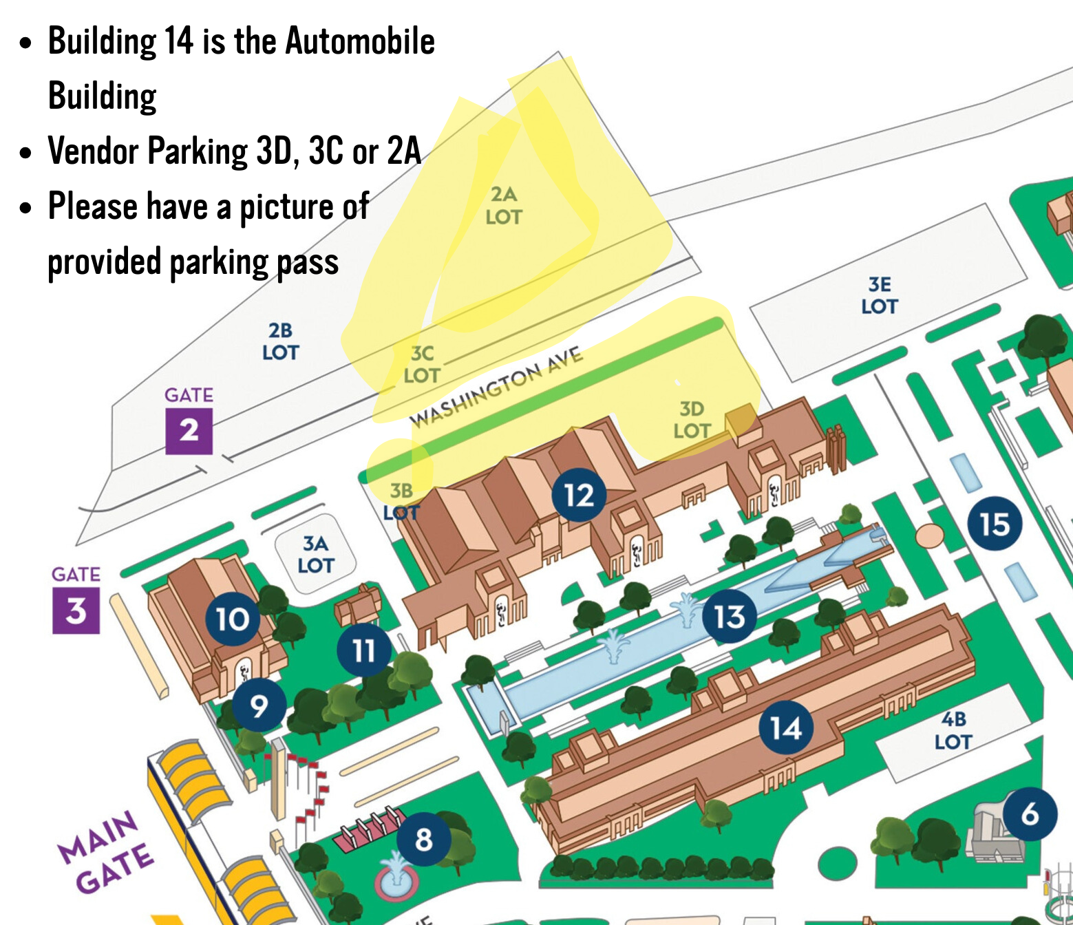 Vendor parking is in Lots 3D, 3C, or 2A (see map below)