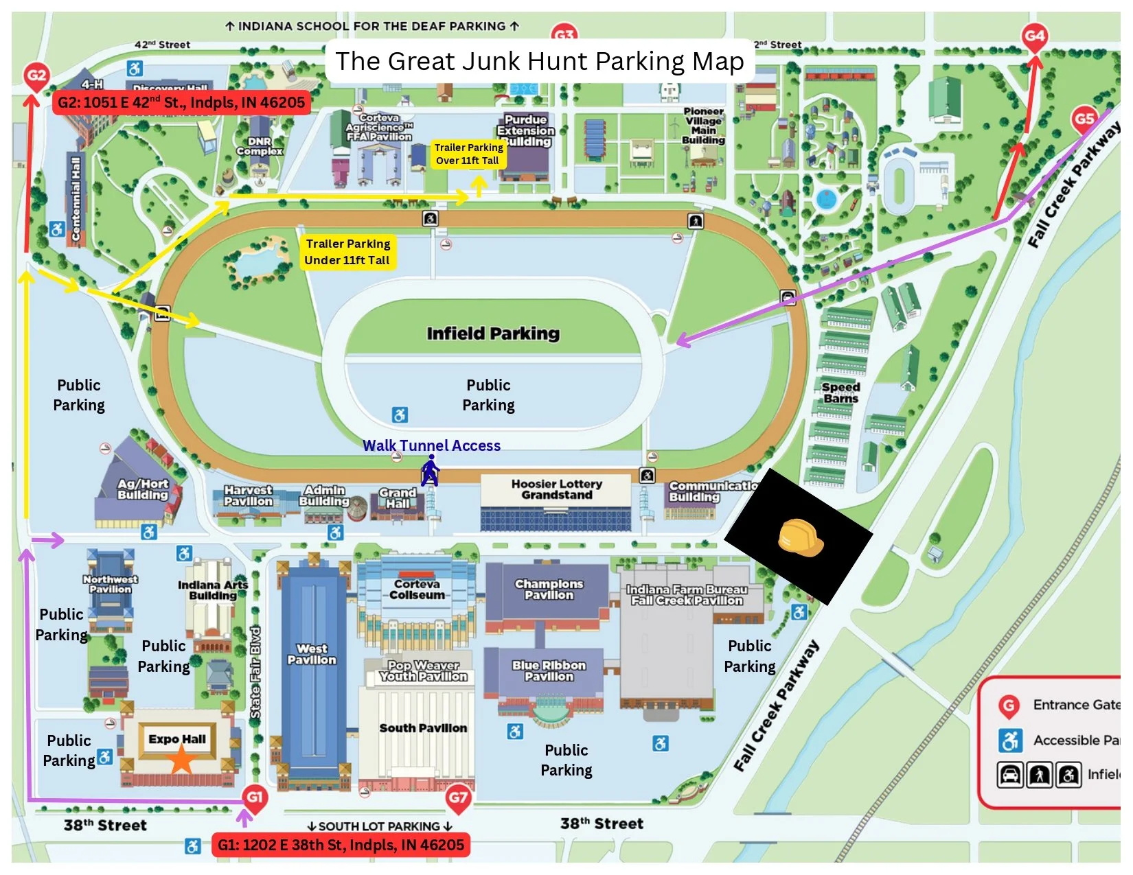 Trailers/trucks OVER 11 ft tall cannot park in the infield lots, a special lot is noted for them on the map below.